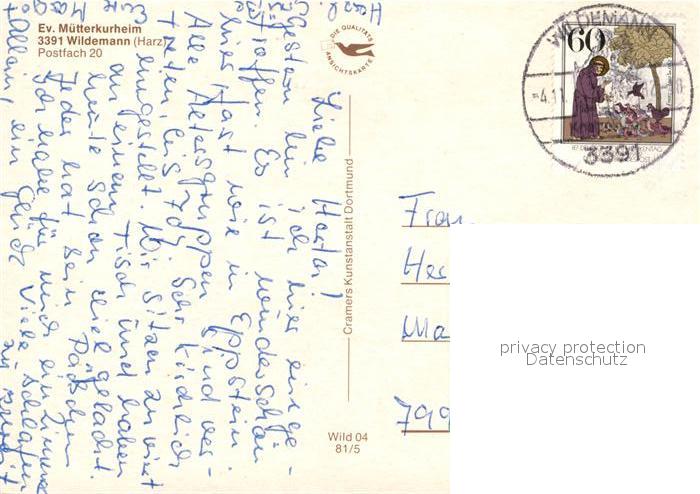 73129702 alte Postkarte Wildemann Ev. Muetterkurheim postalisch gelaufen Erhaltung siehe scans [NatalD47] KatCode: 11110003153015