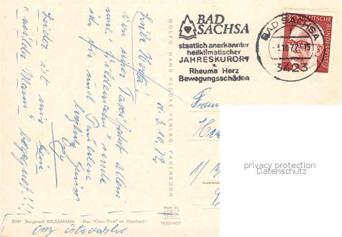 73009146 alte Postkarte Wildemann Fliegeraufnahme postalisch gelaufen Erhaltung siehe scans [WerneD78] KatCode: 11110003153015