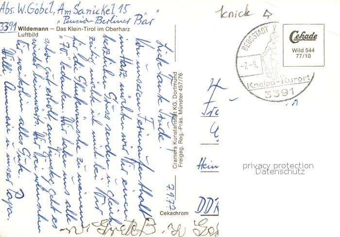 72948311 alte Postkarte Wildemann Fliegeraufnahme postalisch gelaufen Erhaltung siehe scans [KathaD81] KatCode: 11110003153015