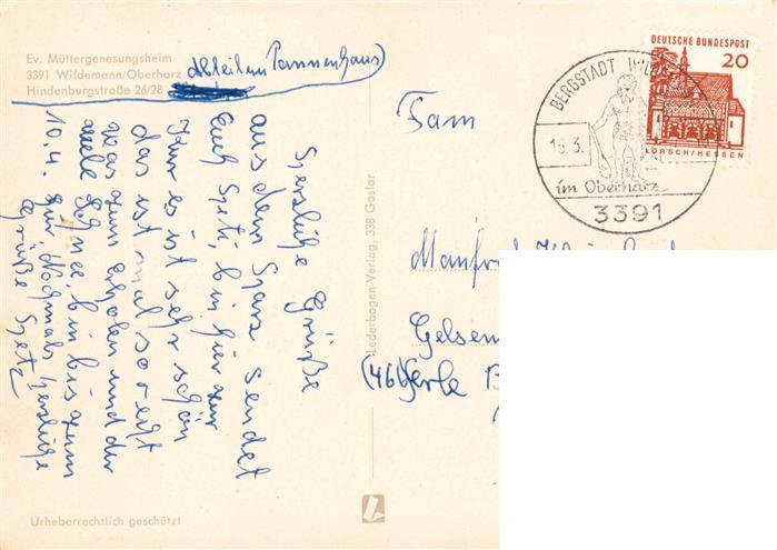73924071 alte Postkarte Wildemann Harz Ev Muettergenesungsheim postalisch gelaufen Erhaltung siehe scans [FriedD77] KatCode: 11110003153015