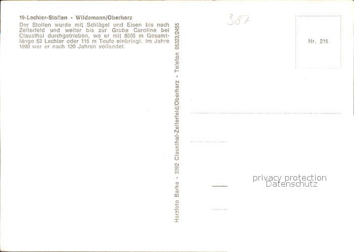 72606468 Wildemann Harz Goslar Niedersachsen 19-Lachter-Stollen postalisch nicht gelaufen Erhaltung siehe scans [NatalD47] KatCode: 11110003153015
