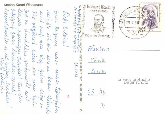 72629150 alte Postkarte Wildemann Harz Goslar Niedersachsen postalisch gelaufen Erhaltung siehe scans [NatalD47] KatCode: 11110003153015