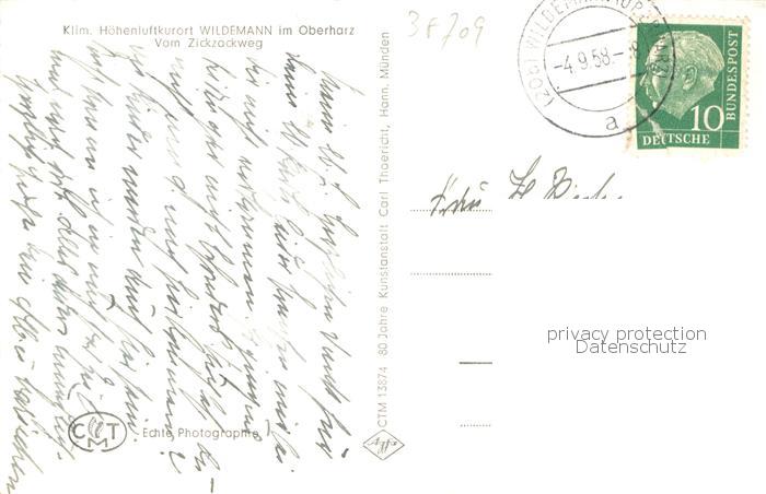 73763612 Wildemann Harz Goslar Niedersachsen Blick vom Zickzackweg postalisch gelaufen Erhaltung siehe scans [FriedD77] alte Postkarte Frie Katcode 11110003153015