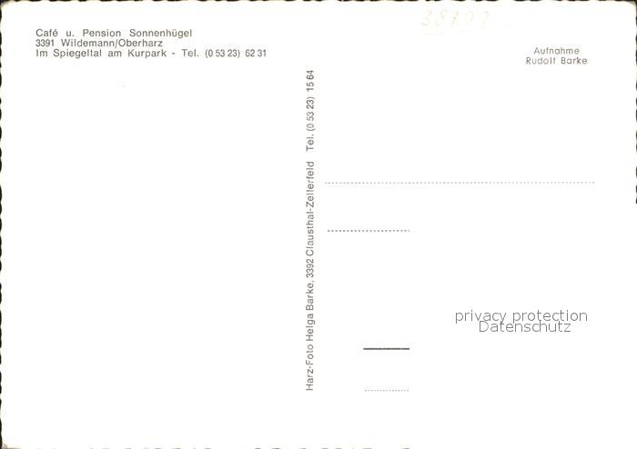 72061347 Wildemann Harz Goslar Niedersachsen Cafe Pension Sonnenhuegel Spiegeltal am Kurpark postalisch nicht gelaufen Erhaltung siehe scans KatCode: 11110003153015
