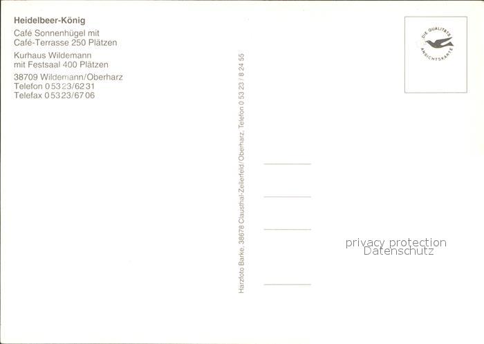 72047014 Wildemann Harz Goslar Niedersachsen Cafe Sonnenhuegel Heidelbeer Koenig postalisch nicht gelaufen Erhaltung siehe scans KatCode: 11110003153015