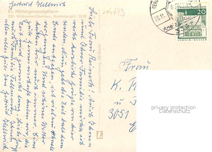 73796523 Wildemann Harz Goslar Niedersachsen Ev Muettergenesungsheim Park Panorama postalisch gelaufen Erhaltung siehe scans [WerneD78] alte Postkarte Wern Katcode 11110003153015