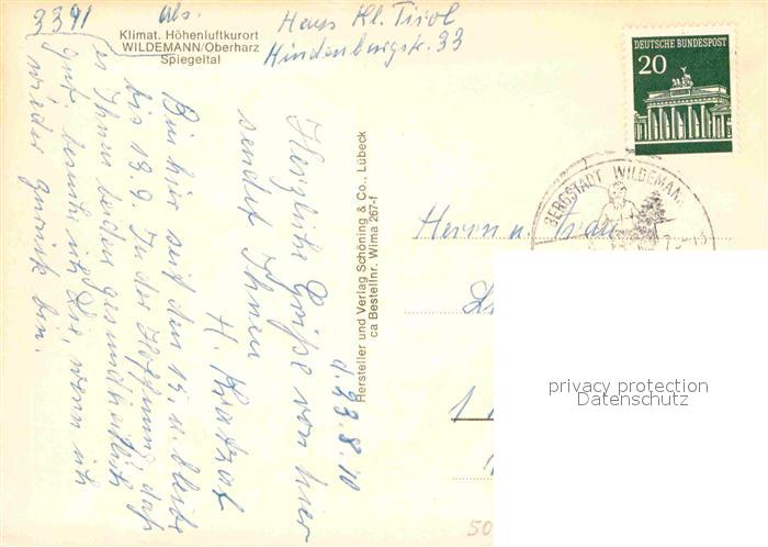 72839623 alte Postkarte Wildemann Harz Goslar Niedersachsen Fliegeraufnahme Spiegeltal postalisch gelaufen Erhaltung siehe scans [AndreD76] KatCode: 11110003153015