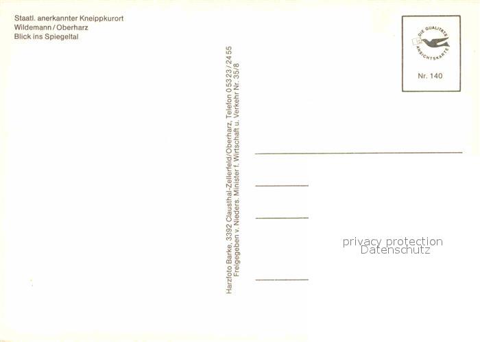 72856937 Wildemann Harz Goslar Niedersachsen Fliegeraufnahme Spiegeltal postalisch nicht gelaufen Erhaltung siehe scans [AndreD76] KatCode: 11110003153015