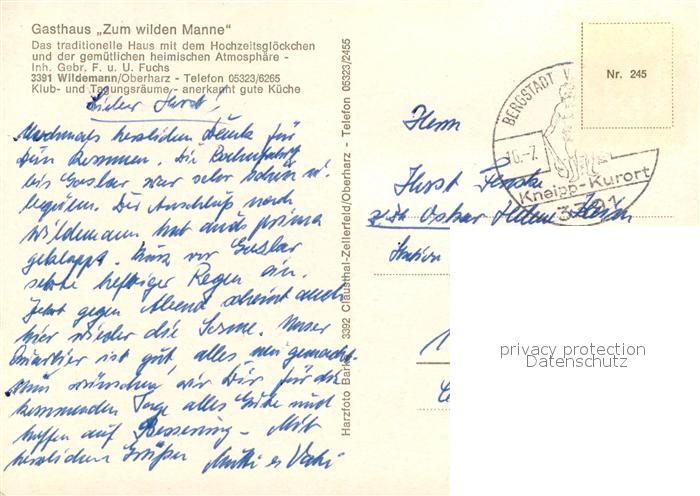 73672961 Wildemann Harz Goslar Niedersachsen Gasthaus Zum wilden Manne Gastraeume postalisch gelaufen Erhaltung siehe scans [WerneD78] alte Postkarte Wern Katcode 11110003153015