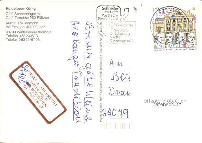 72264789 alte Postkarte Wildemann Harz Goslar Niedersachsen Heidelbeer-Koenig Cafe Sonnenhuegel postalisch gelaufen Erhaltung siehe scans KatCode: 11110003153015