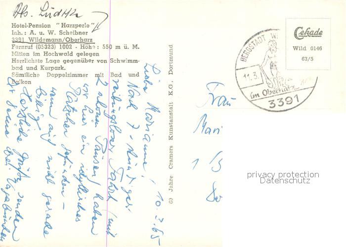 73724702 Wildemann Harz Goslar Niedersachsen Hotel Pension Harzperle im Winter postalisch gelaufen Erhaltung siehe scans [FriedD77] alte Postkarte Frie Katcode 11110003153015