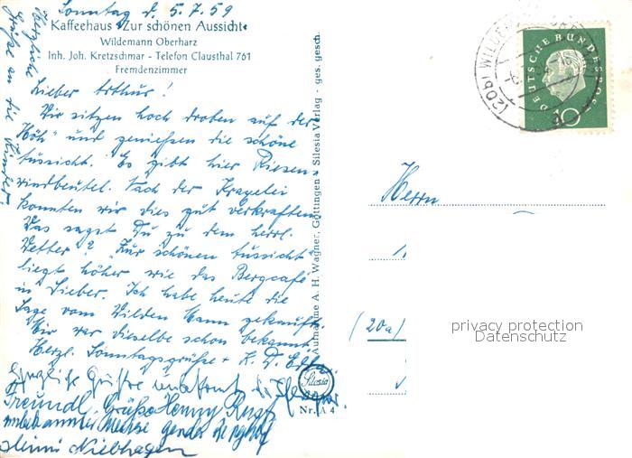 73669267 Wildemann Harz Goslar Niedersachsen Kaffeehaus Zur schoenen Aussicht postalisch gelaufen Erhaltung siehe scans [WerneD78] alte Postkarte Wern Katcode 11110003153015