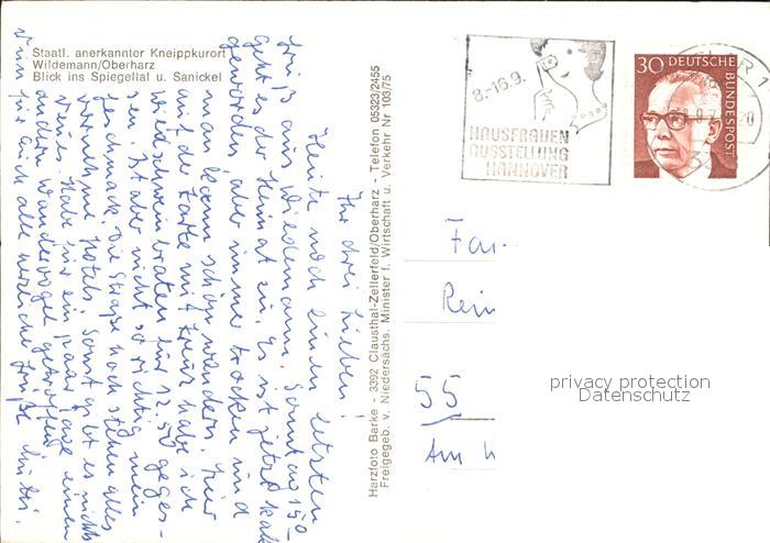 72227194 alte Postkarte Wildemann Harz Goslar Niedersachsen Spiegeltal Sanickel postalisch gelaufen Erhaltung siehe scans KatCode: 11110003153015