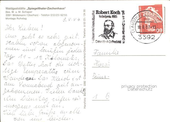 72227188 alte Postkarte Wildemann Harz Goslar Niedersachsen Waldgaststaette Spiegelthaler- Zechenhaus postalisch gelaufen Erhaltung siehe scans KatCode: 11110003153015