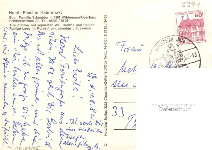72914876 alte Postkarte Wildemann Hotel Pension Hafermarkt postalisch gelaufen Erhaltung siehe scans [FriedD77] KatCode: 11110003153015