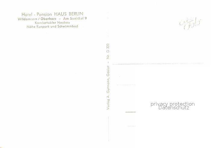 32731844 Wildemann Hotel Pension Haus Berlin postalisch nicht gelaufen Erhaltung siehe scans [WerneD78] KatCode: 11110003153015
