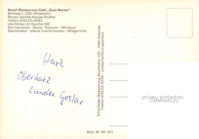 73047488 Wildemann Hotel Restaurant Zum Harzer Cafe postalisch nicht gelaufen Erhaltung siehe scans [WerneD78] KatCode: 11110003153015