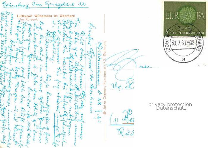 72889824 alte Postkarte Wildemann Kurpark Luftkurort postalisch gelaufen Erhaltung siehe scans [FriedD77] KatCode: 11110003153015