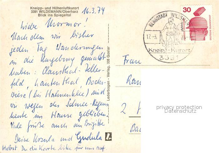 73312498 alte Postkarte Wildemann Panorama Blick ins Spiegeltal postalisch gelaufen Erhaltung siehe scans [FriedD77] KatCode: 11110003153015