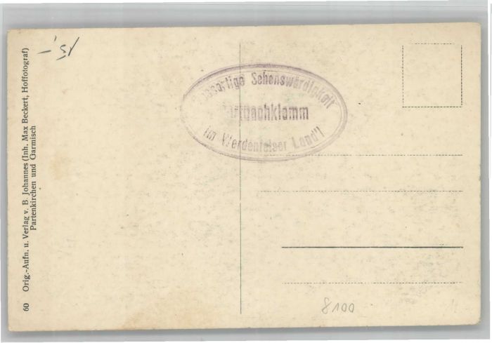 40743909 Wildenau Gasthof Partnachklamm postalisch nicht gelaufen KatCode: