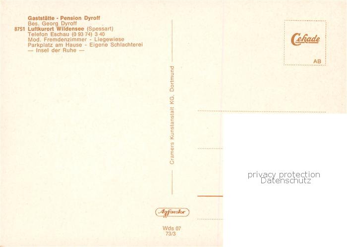 73845685 Wildensee Unterfranken Gaststaette Pension Dyroff postalisch nicht gelaufen Erhaltung siehe scans [FriedD77] KatCode: 11110009676123