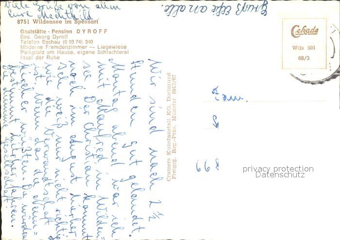 72102475 alte Postkarte Wildensee Unterfranken Restaurant Pension Dyroff Fliegeraufnahme postalisch gelaufen Erhaltung siehe scans KatCode: 11110009676123