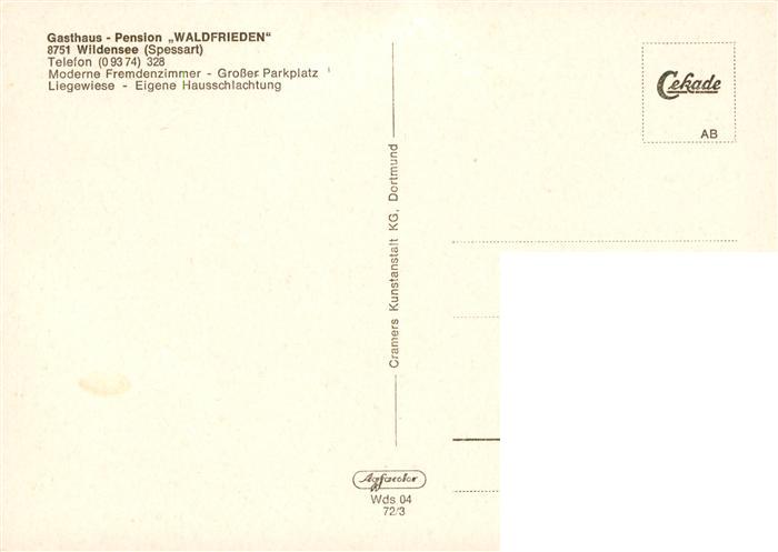 73898134 Wildensee Unterfranken Spessart Eschau Gasthaus Pension Haus Waldfrieden Gastraeume postalisch nicht gelaufen Erhaltung siehe scans [WerneD78] KatCode: 11110009676123