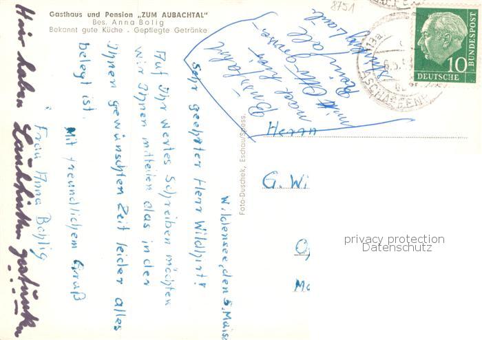 73854661 alte Postkarte Wildensee Unterfranken Spessart Eschau Gasthaus Pension Zum Aubachtal postalisch gelaufen Erhaltung siehe scans [WerneD78] KatCode: 11110009676123
