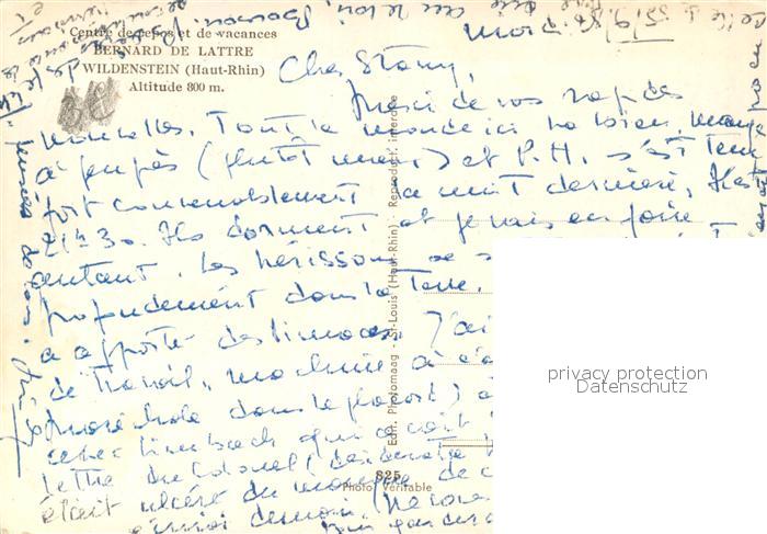 13237298 Wildenstein Haut-Rhin Centre de repos et de vacances Bernard de Lattre postalisch nicht gelaufen Erhaltung siehe scans [FriedD77] KatCode: 11170068668370