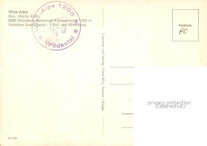 73109239 Wildental Wies Alpe postalisch nicht gelaufen Erhaltung siehe scans [KathaD81] KatCode: 11390