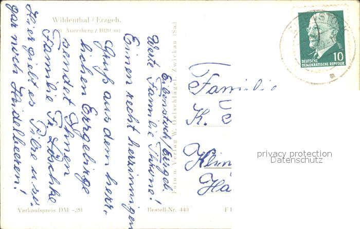 72362647 alte Postkarte Wildenthal Eibenstock Auersberg postalisch gelaufen Erhaltung siehe scans KatCode: 11110014191120