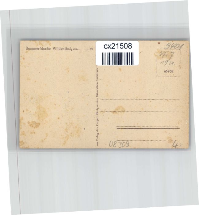 30740072 Wildenthal Eibenstock Drechslers Gasthof postalisch nicht gelaufen KatCode: 11110014191120