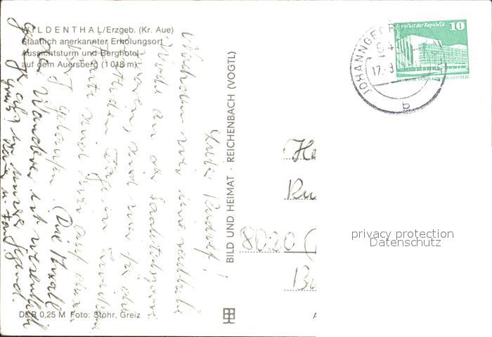 72083929 alte Postkarte Wildenthal Eibenstock Erzgebirge Aussichtsturm Berghotel Auersberg postalisch gelaufen Erhaltung siehe scans KatCode: 11110014191120