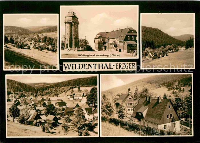 72703373 alte Postkarte Wildenthal Eibenstock Landschaftspanorama HO Berghotel Auersberg Aussichtsturm Ortsansicht postalisch gelaufen Erhaltung siehe scans [FriedD77] KatCode: 11110014191120