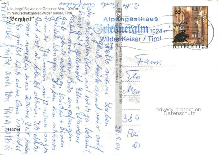 72576936 alte Postkarte Wilder Kaiser Gasthaus Griesner Alm postalisch gelaufen Erhaltung siehe scans [LiesaD40] KatCode: 11390332070368