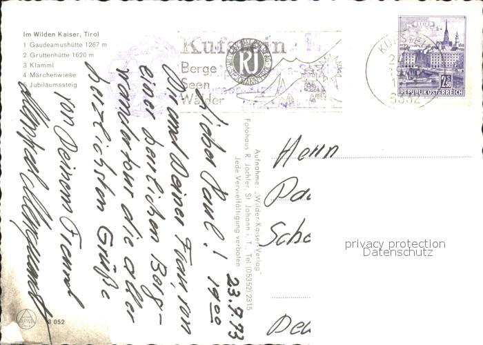72572710 alte Postkarte Wilder Kaiser Gaudeamushuete Gruttenhuette Klamml Maerchenwiese postalisch gelaufen Erhaltung siehe scans [AndreD76] KatCode: 11390332070368