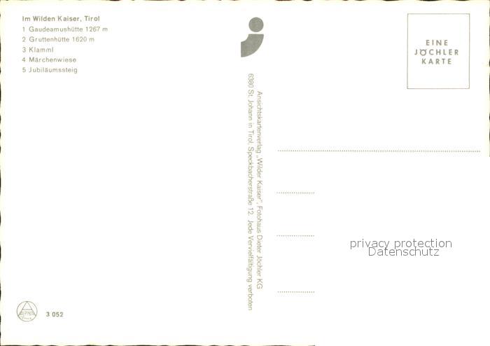 71859851 Wilder Kaiser Gaudeamushuette Gruttenhuette Klamml Maerchenwiese Jubilaeumssteig postalisch nicht gelaufen Erhaltung siehe scans KatCode: 11390332070368