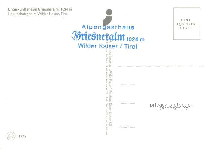 73169192 Wilder Kaiser Griesner Alm Alpengasthaus postalisch nicht gelaufen Erhaltung siehe scans [KathaD81] KatCode: 11390332070368