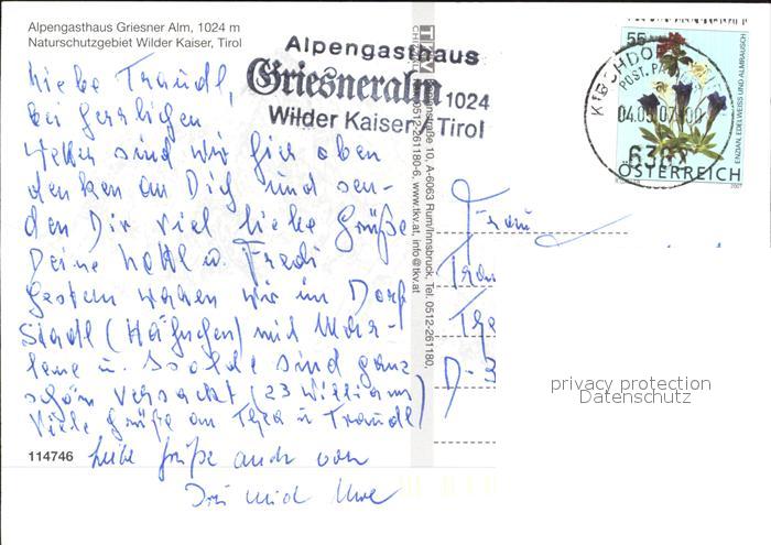 72576939 alte Postkarte Wilder Kaiser Griesner Alm Gasthaus postalisch gelaufen Erhaltung siehe scans [LiesaD40] KatCode: 11390332070368