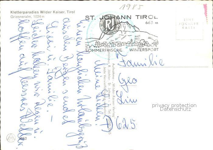 72394894 alte Postkarte Wilder Kaiser Griesneralm postalisch gelaufen Erhaltung siehe scans KatCode: 11390332070368