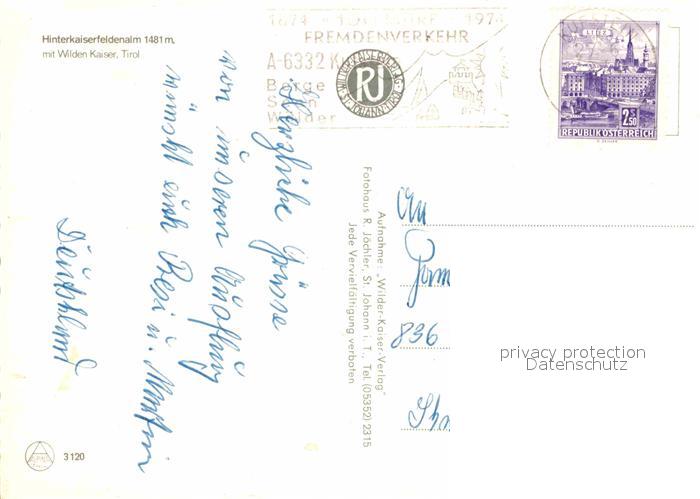 72679992 alte Postkarte Wilder Kaiser Hinterkaiserfeldenalm postalisch gelaufen Erhaltung siehe scans [LiesaD40] KatCode: 11390332070368