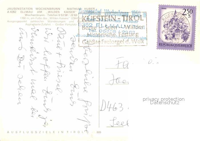 72913810 alte Postkarte Wilder Kaiser Jausenstation Wochenbrunn Ellmau postalisch gelaufen Erhaltung siehe scans [KathaD81] KatCode: 11390332070368