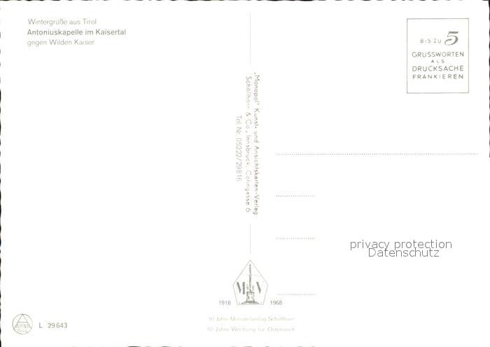 72491505 Wilder Kaiser mit Antoniuskapelle postalisch nicht gelaufen Erhaltung siehe scans KatCode: 11390332070368