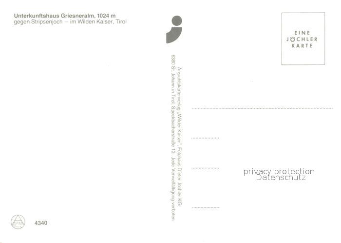 13212936 Wilder Kaiser Unterkunftshaus Griesner-Alm postalisch nicht gelaufen Erhaltung siehe scans [LiesaD40] KatCode: 11390332070368