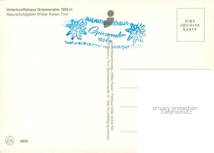73368406 Wilder Kaiser Unterkunftshaus Griesneralm postalisch nicht gelaufen Erhaltung siehe scans [LiesaD40] KatCode: 11390332070368