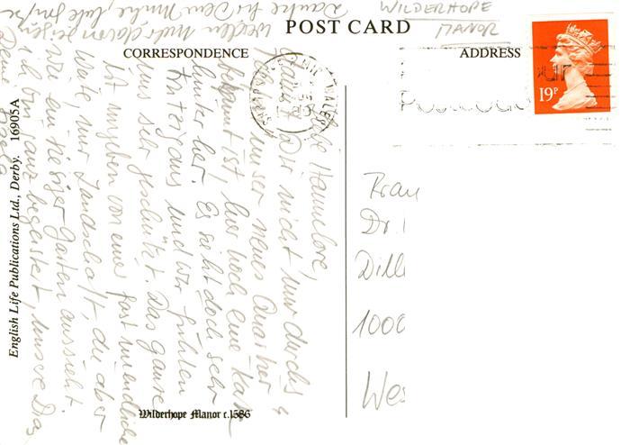 old postcard Wilderhope Manor Longville in the Dale UK Wilderhope Manor Castle aerial view postalisch gelaufen Fliegeraufnahme Erhaltung siehe scans [FriedD77]