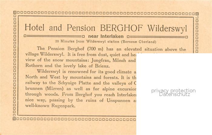 13797494 Wilderswyl Wilderswil BE Hotel Pension Berghof Berner Alpen postalisch nicht gelaufen Werbekarte (keine Postkarte) Erhaltung siehe scans [FriedD77] KatCode: 11470060175304