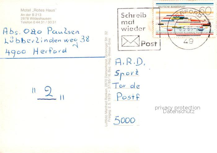 73866595 alte Postkarte Wildeshausen Hotel Rotes Haus Gastraeume Fliegeraufnahme postalisch gelaufen Erhaltung siehe scans [WerneD78] KatCode: 11110003458014