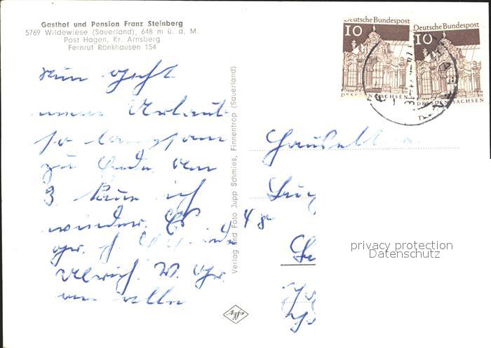 71997423 alte Postkarte Wildewiese Gasthof Pension Franz Steinberg postalisch gelaufen Erhaltung siehe scans KatCode: 11110005958044