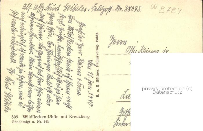 71584346 alte Postkarte Wildflecken postalisch gelaufen Erhaltung siehe scans KatCode: 11110009672163